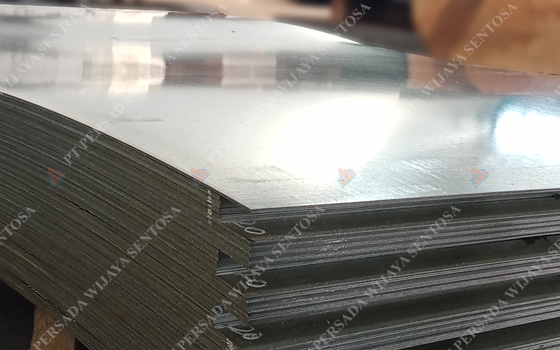 Plat baja lembaran yang merupakan perpaduan antara besi dan seng sehingga membuat plat ini tahan karat. Untuk plat galvanis memiliki warna yang lebih mengkilap jika dibandingkan dengan plat galvanil. Plat ini standarnya mempunyai ukuran lebar 4 feet (1200 mm/1,2 m) dan panjang 8 feet (2400 mm/2,4 m) dengan ketebalan yang berkisar antara 0,5 mm sampai 2,0 mm. Dibentuk melalui proses galvanizing dan annealing dengan bahan dasar plat SPCC menjadikan plat jenis ini memiliki ciri fisik berwarna abu-abu dengan permukaan sedikit bertekstur halus seperti lapisan primer cat. Plat galvanis mempunyai permukaan yang bermotif (minimized spangle, reguler spangle, big spangle) dan yang tidak bermotif (zero spangle).